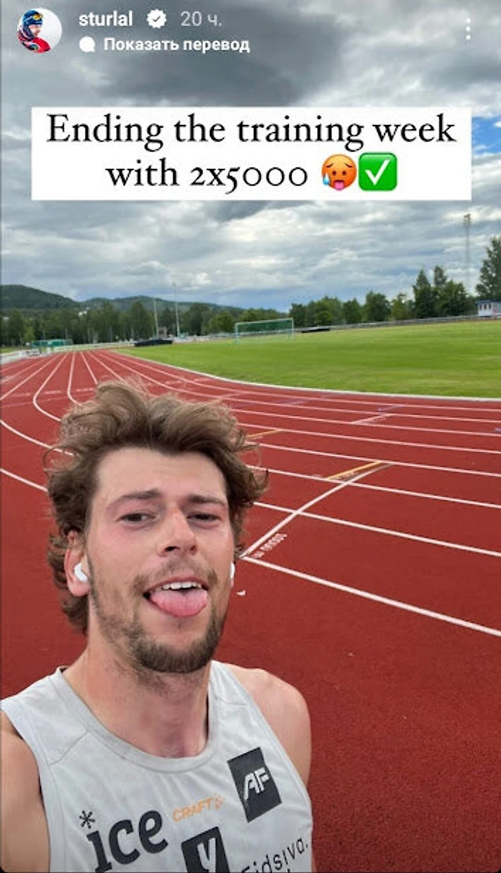 Стурла Хольм Лагрейд провел беговую тренировку на стадионе
