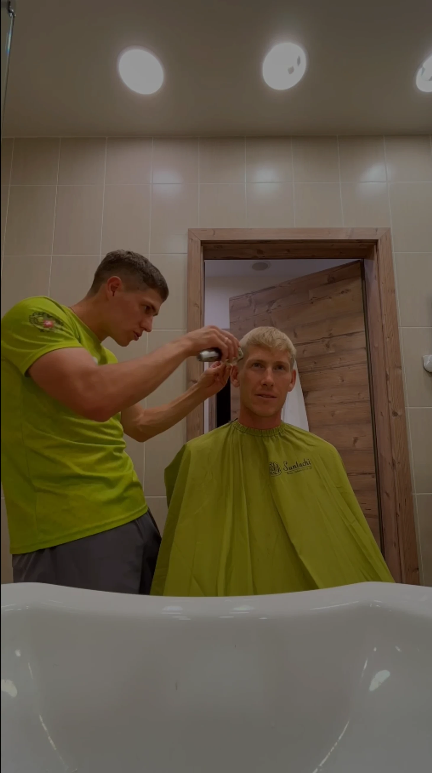 Трехкратный олимпийский призер по биатлону Эдуард Латыпов подстриг партнера по сборной России Александра Поварницына.