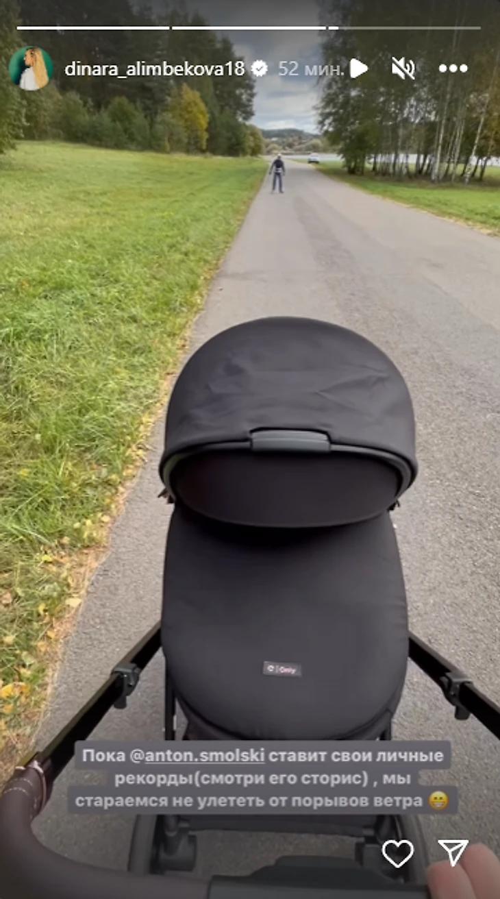 «Пока Антон Смольский ставит свои личные рекорды, мы стараемся не улететь от порывов ветра», – добавила она, опубликовав видео во время прогулки с коляской.