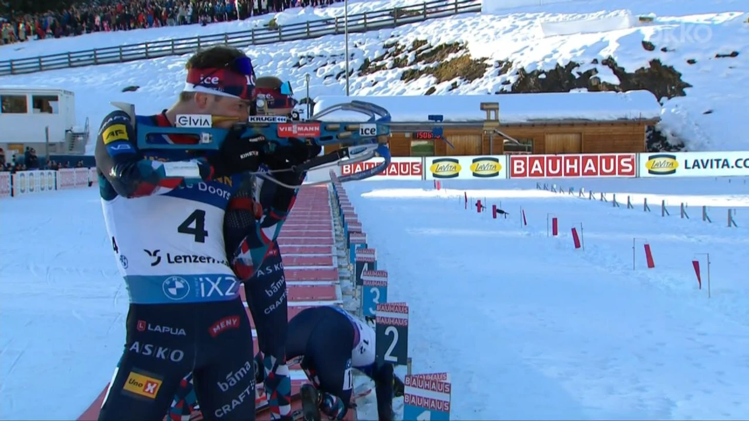 Сегодня на этапе в Ленцерхайде проходил пасьют. Во время четвертой стрельбы норвежец Эндре Стремсхайм уронил обойму и полез за ней, сняв лыжи.