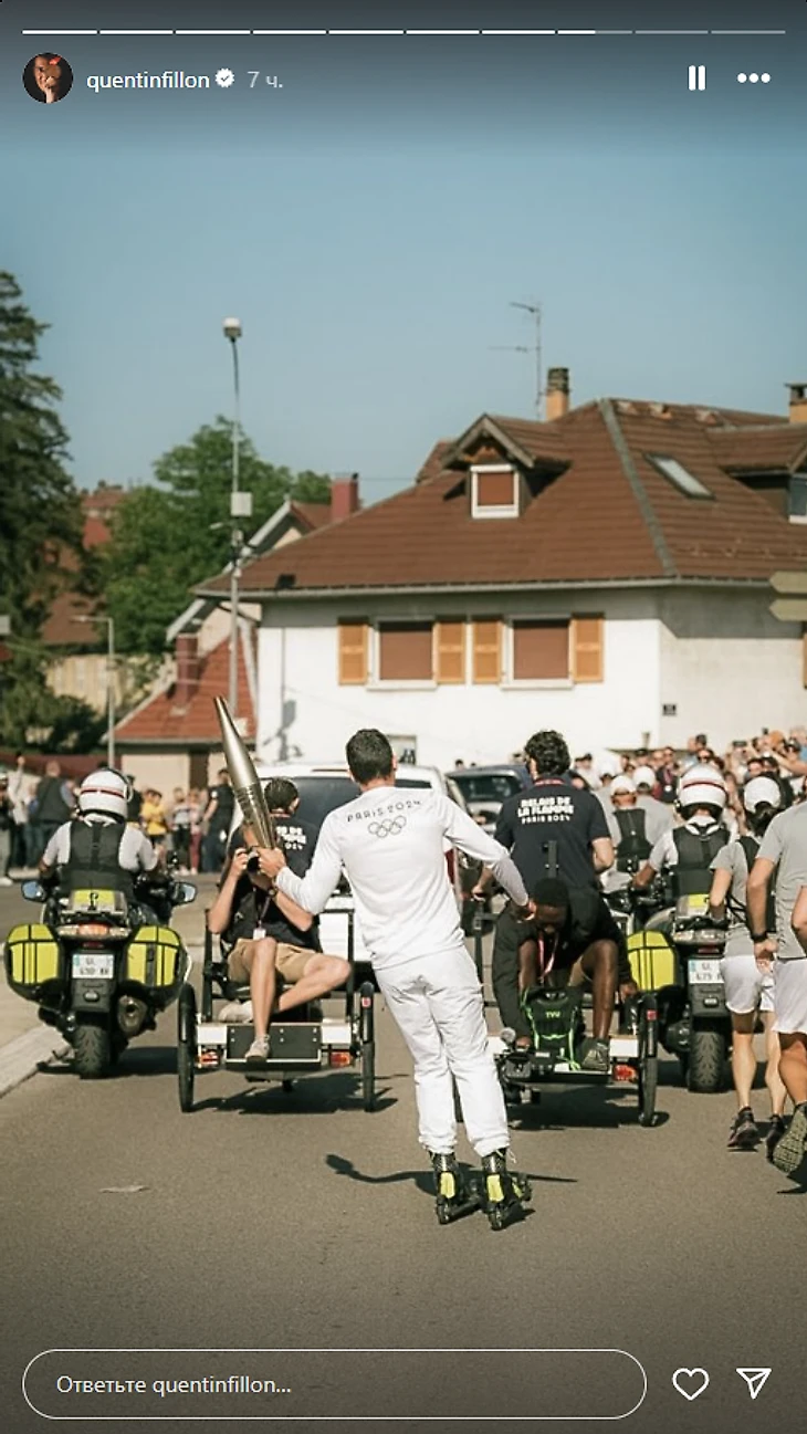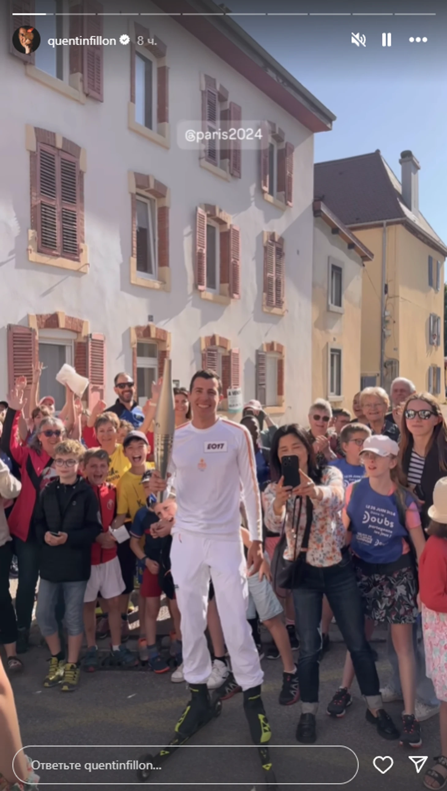 Французский биатлонист Кентен Фийон-Майе поучаствовал в эстафете олимпийского огня Парижа-2024.