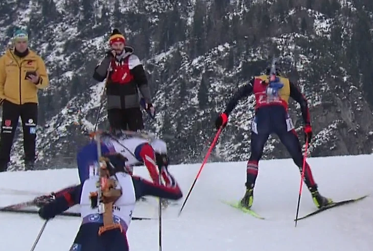 Жаклен упал на последнем круге гонки преследования на Кубке мира в Хохфильцене. Он боролся за победу с Йоханнесом Бо