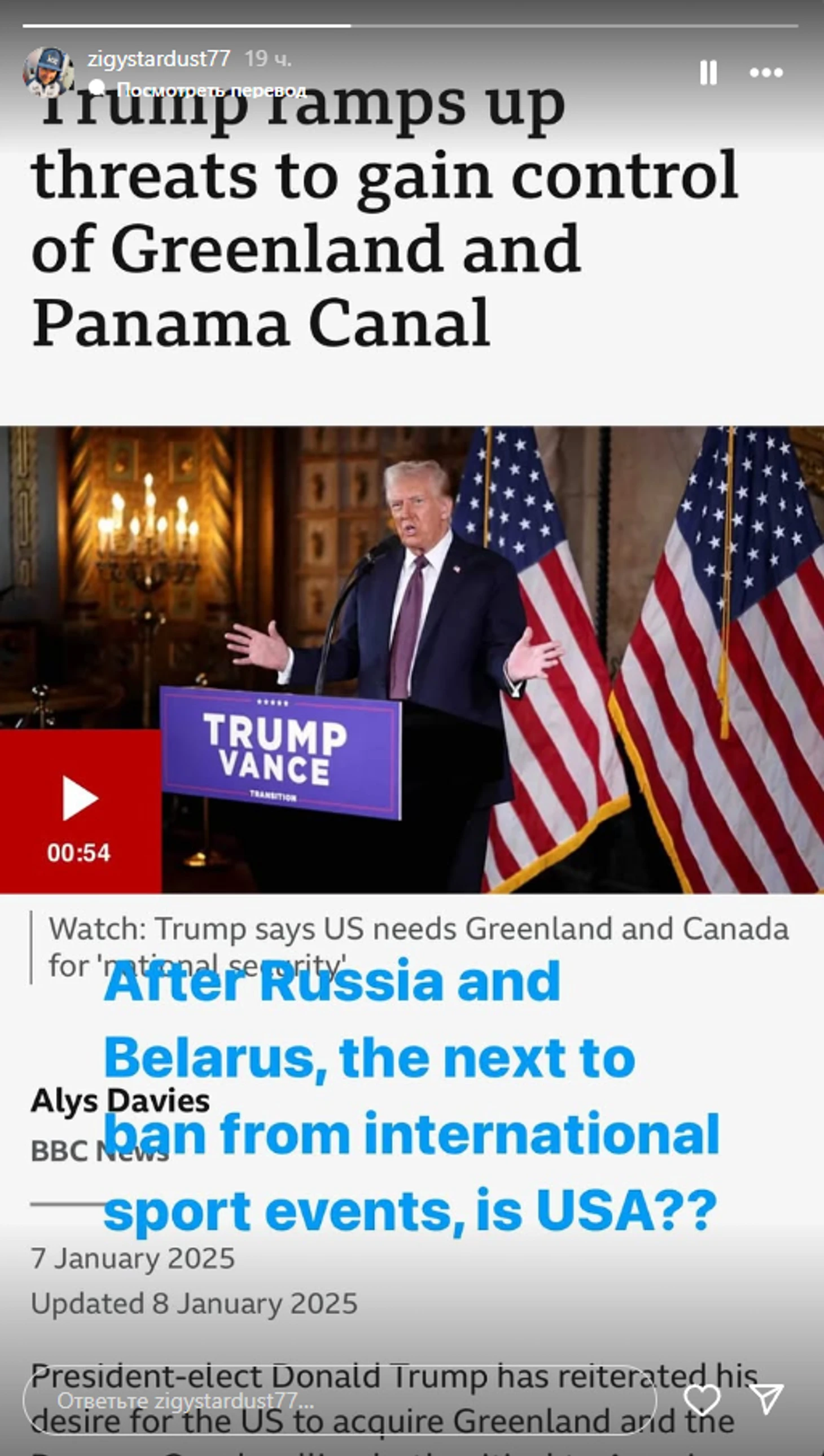 «США будут отстранены от международных соревнований следом за Россией и Беларусью?» – написал в инстаграме тренер сборной Норвегии по биатлону Зигфрид Мазе.