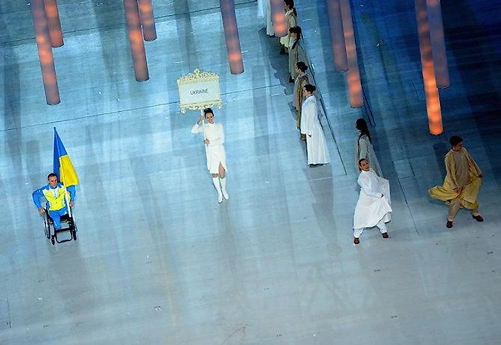 «На церемонии открытия Паралимпиады команда уполномочила одного спортсмена Михаила Ткаченко (у Михаила нет ног, он передвигается на коляске или на протезах) вынести флаг Украины.