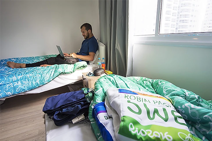 Олимпийскую деревню в Рио-де-Жанейро обсуждают давно. С одной стороны, велосипедные дорожки, бассейны, площадки для барбекю и во всех номерах электронные устройства от комаров, чтобы защититься от вируса Зика; с другой – спортсмены должны спать на дешевых кроватях и довольствоваться шкафами, сделанными из ткани, натянутой на металлическую основу. Из первоначально запланированных 3600 телевизоров (по одному в каждой комнате) были установлены только 50.
