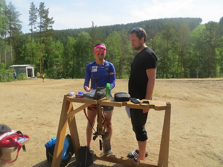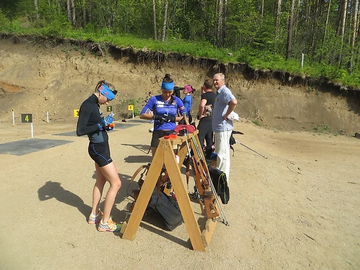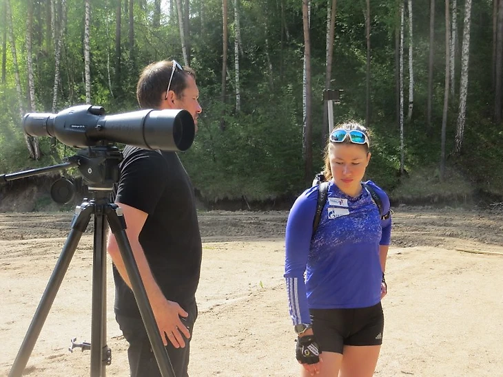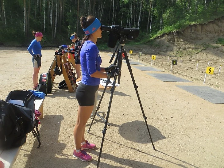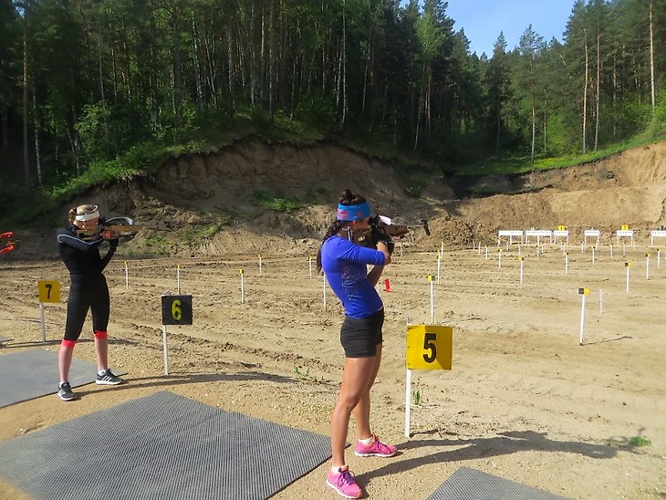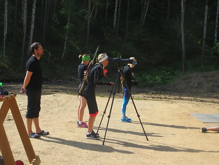 Это был завершающий день восстановительного сбора в Белокурихе. С утра- последняя стрелковая тренировка. Тренер Сергей Коновалов в течение всей тренировки особое внимание уделял стрельбе Светланы Мироновой и Валентины Телициной.