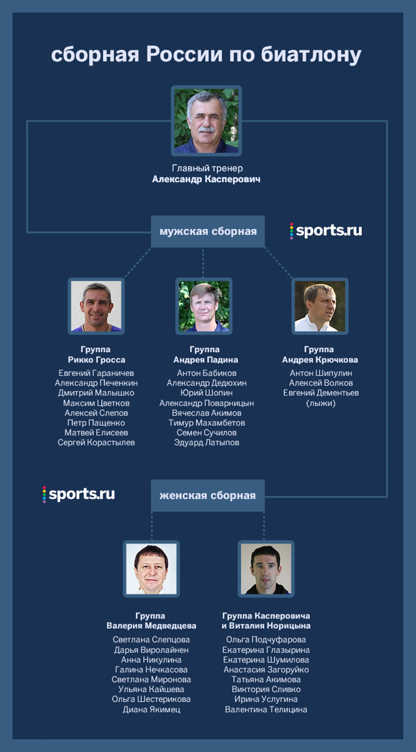 У нас со старшим не определились до сих пор. Шансы Медведцева невысоки: его отношения с Касперовичем, мягко говоря, натянутые, а из его состава на Кубок мира не пробился почти никто – возможно, ему придется принимать резерв и колесить по Кубку IBU. В мае специалист из Красноярска точно соглашался не на это.