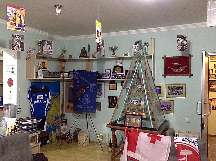 ...Тбилиси. У первого корпуса Технического университета, в неприметном переулке, разбросаны спортивные залы. В одном из них, на втором этаже, куда ведет лестница с улицы, обвитая гроздьями винограда, квартирует Федерация тяжелой атлетики. Внутри – настоящий музей: медали, ордена, портреты чемпионов и олимпийская форма президента федерации, главной звезды грузинского спорта – Кахи Кахиашвили.