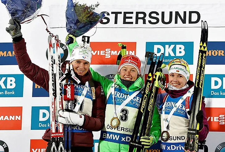 Даже несмотря на неудачу лидеров, сенсационных результатов тоже было не так уж много (что для индивидуальной гонки не совсем типично). Приятным сюрпризом стал подиум Дарьи Юркевич. Белоруска стала единственной, кто прошёл все 4 рубежа на ноль. Это и стало секретом её успеха. Первого в карьере спортсменки (желаем Даше, чтобы не последнего). Если честно, даже надоела за сутки читать заголовки типа «На пьедестале Даша, но не та». Или «Ещё одна Дарья принесла медаль Беларуси». Та, не та, странно это как-то. Я бы на месте Юркевич даже обиделась. Но её, естественно, не до того было. Юркевич наслаждалась моментом, излучала радость и позитив, радовала нас ослепительной улыбкой. Если отойти от спортивного принципа, то белоруска стала не только главным открытием гонки, но ещё и украшением пьедестала почёта. Так белорусы за 2 гонки завоевали больше наград, чем за весь прошлый сезон.