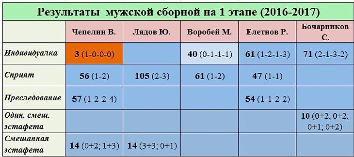 Однако! Лично я, а вместе со мной весь тренерский штаб никакого повода для эйфории не видим. В Эстерсунде хватило неоднозначностей. Мы радовались нашим удачам, но огорчались проблемным моментам, которых тоже проявилось немало. Были откровенно слабые выступления. Чего уж там пытаться наводить тень на плетень! Как, если не провалом, можно назвать последнее место Лядова в спринте?!