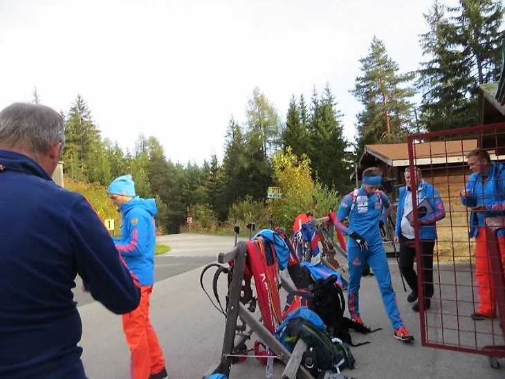 После того, как биатлонисты убежали, я подошла к Брагину, представилась, извинилась, что не знаю его отчества. "Да можно просто по имени,- сказал он.- Ну нет, я так не могу.- Тогда у меня отчество, как у Попова.- Владимирович Владимирович, что ли?" Брагин смеётся, и непонятно было, шутит он или говорит всерьёз. Сказала ещё и Брагину, что хотела бы встретиться с биатлонистами группы Гросса в неформальной обстановке, взять у них автографы, попросила уточнить, когда это можно будет сделать. " Так вам же Александр Владимирович сказал, что в половине седьмого ужин, вот все и соберутся". Так что, хотя и занят был Брагин, когда я прошла мимо него к Попову, но обратил внимание и слышал, о чём мы говорили с Поповым. Да это можно было и так понять: если не запретил фотографировать, то понял, что это болелельщица.