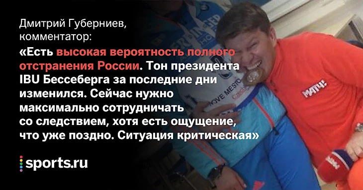 Пожалуй, главный индикатор глубины наших проблем – риторика президента Международного союза биатлонистов (IBU) Андерса Бессеберга, серьезно изменившаяся за пару суток. Очевидно, что боссы готовы к тяжелейшему решению – пусть и придется вместе со сборной России потерять важный рынок, аудиторию, репутацию относительно чистого вида спорта etc.