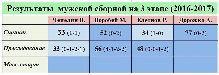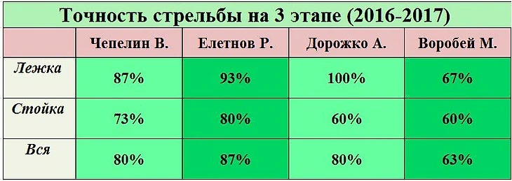 ДИНАМИКА СТРЕЛЬБЫ МУЖСКОЙ СБОРНОЙ НА ПЕРВЫХ ТРЕХ ЭТАПАХ СЕЗОНА 2016-2017