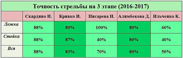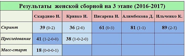 ДИНАМИКА СТРЕЛЬБЫ ЖЕНСКОЙ СБОРНОЙ НА ПЕРВЫХ ТРЕХ ЭТАПАХ СЕЗОНА 2016-2017