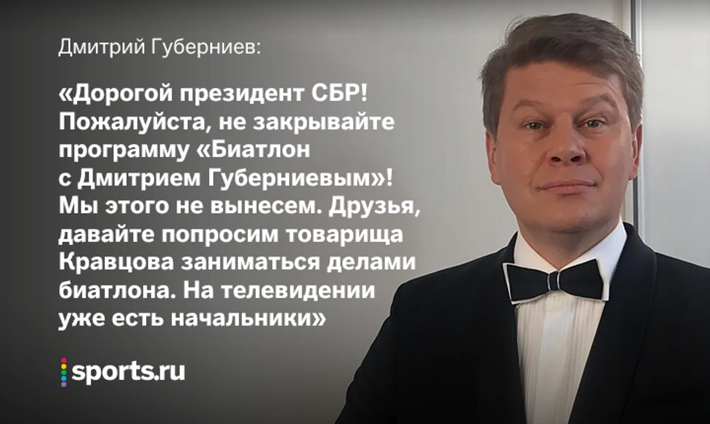 Дмитрий Губерниев ответил в своей привычной шутливой манере, хотя наверняка ждет от биатлонного босса публичных извинений: