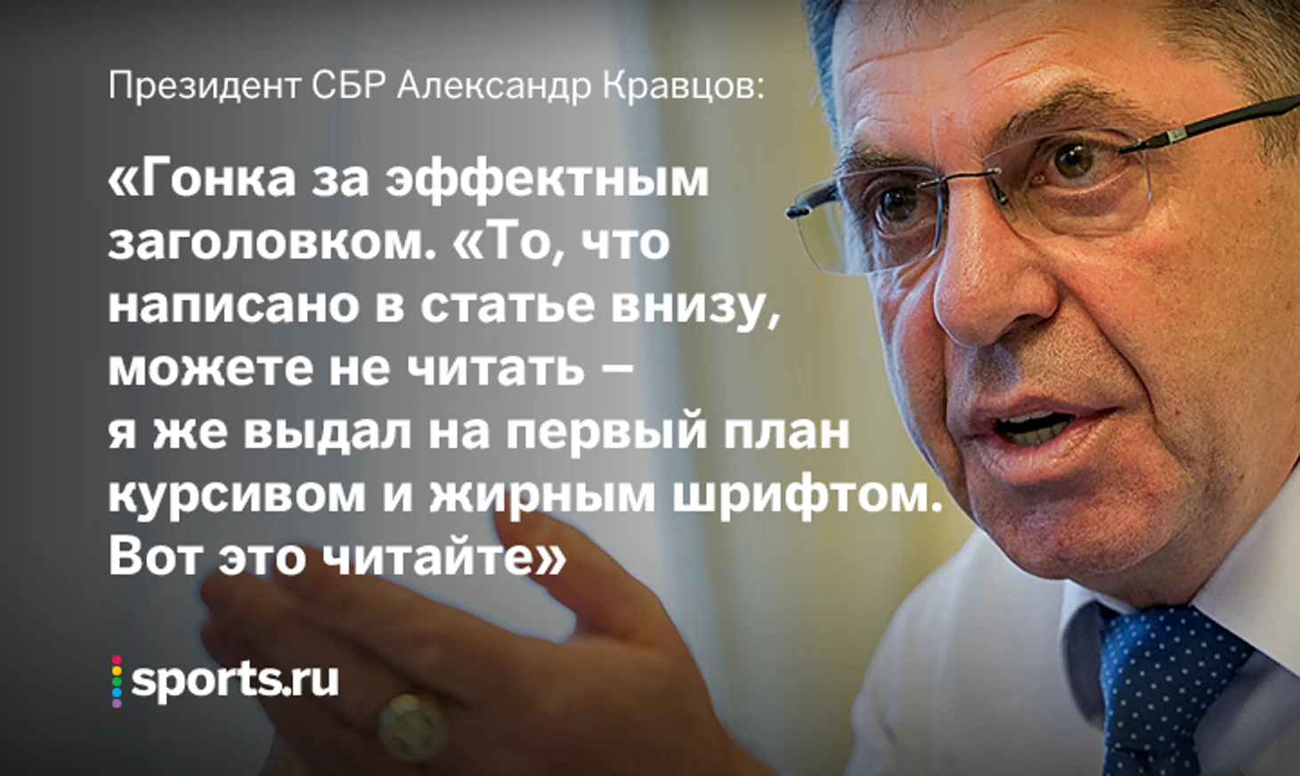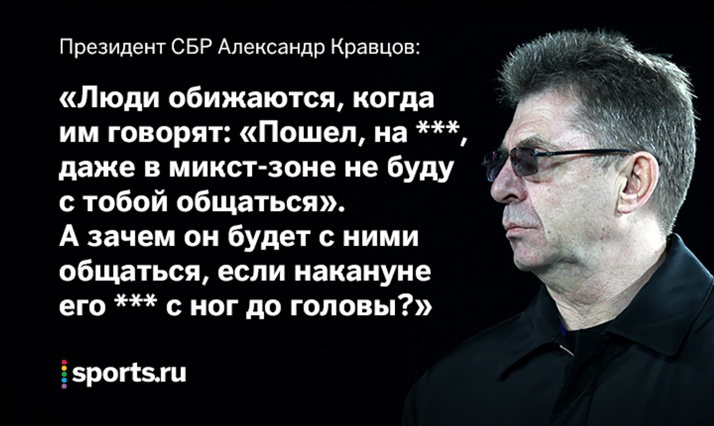 Sports.ru не раз писал: с таким президентом популярный спорт обрекает себя на тихую гибель. На одном из совещаний в Минспорта, когда там еще рулил Мутко, Александр Михайлович выступил с инициативой «ограничить доступ журналистам и сделать команду непубличной». Все это время он давал интервью только приближенным журналистам и фехтовал с неуправляемыми блогерами / диванными комментаторами. То есть, с нами.