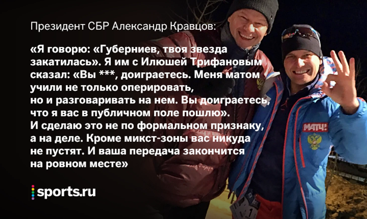 «У меня был серьезный разговор, чтобы кое-кому рот прикрыли». Босс русского биатлона против Губерниева