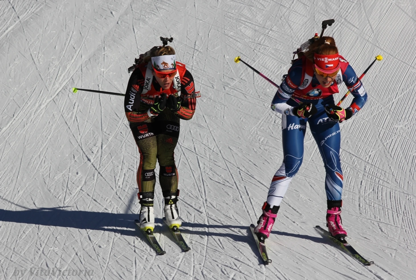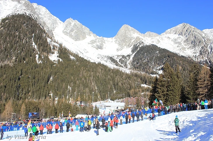 Вскоре выяснилось мое главное заблуждение. Я почему-то думала, что еду на итальянский этап, хотя знала, что в Италии о биатлоне слышали разве что друзья и близкие родственники биатлонистов. Этап в Антхольце – немецкий! До Мюнхена всего 300 км, поэтому 90% болельщиков на стадионе – немцы, диктор по стадиону тоже говорит по-немецки, изредка переходя на итальянский. Поэтому за Лауру Дальмайер здесь болеют громче,