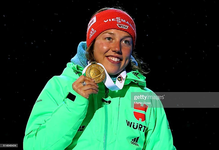 В 21 год ты бежишь финальный этап эстафеты, в составе команды-претендента. Многие бы занервничали, но только не Лаура, хладнокровно отработав оба рубежа и не потратив ни одного дополнительного патрона. Итогом стали минута преимущества над Францией и круглая медаль, так приятно греющая грудь. А в Холменколлене-2016 она стала первой биатлеткой, в 22 года 7 раз доезжавшей до медалей на ЧМ. Сколько она ещё заработает - вопрос интересный и непредсказуемый. Но если немка попадает, то угнаться за ней нереально тяжело!