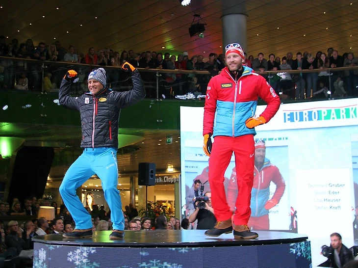 И только хозяева Чемпионата, австрийцы, в Торговом Центре Кицбюэля устроили что-то вроде презентации своей команды, организованную ORF Sport и организаторами Чемпионата