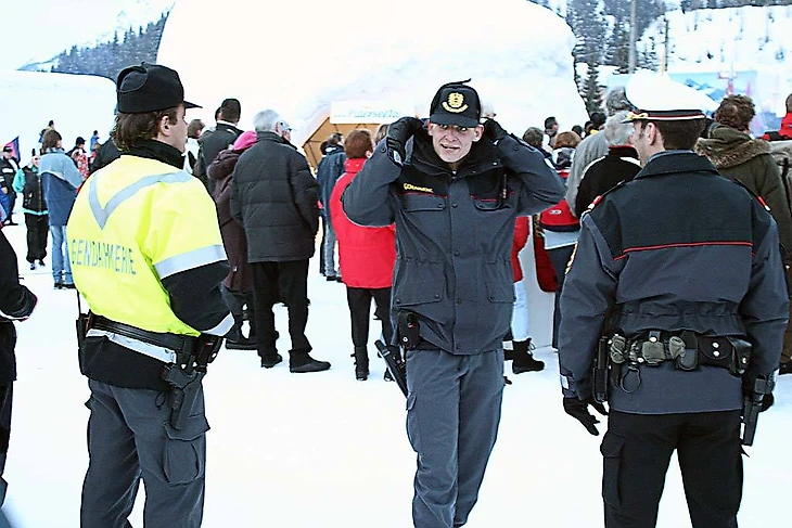 Погуляв по окрестным склонам, зрителя начинали партиями стекаться на отремонтированный стадион, задерживаясь группами, для бесед о насущных днях. Что сразу бросилось в глаза - это наличие жандармерии и полиции около стадиона. Традиционно, в Хохфильцене охрану несут служащие ландсвера (то бишь военные)