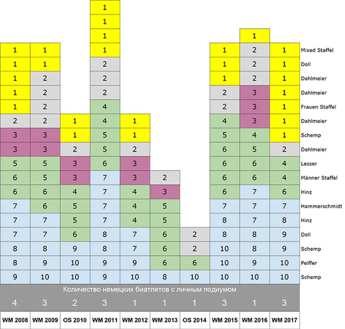 - Учтены все места в ТОП-10 немецких биатлетов за последние 10 лет