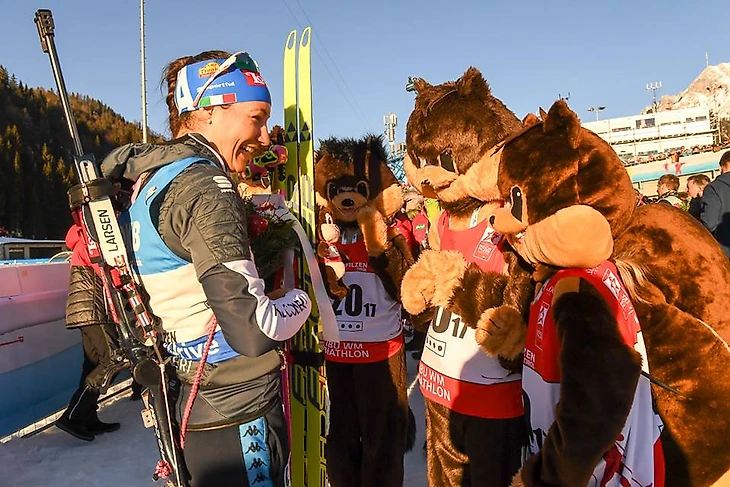 Б - «Бурли». Именно так зовут талисман ЧМ-2017 в Хохфильцене, который прошёл в Австрии. Белка Бурли в течение 10 дней прыгала среди биатлонных склонов. С Талисманом было сделано более тысячи селфи.