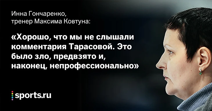 Тренер Максима Ковтуна уверена, что «своих спортсменов надо любить и поддерживать». И «свое мнение Тарасовой надо было держать при себе». Среди тех, кто поддержал Гончаренко – тренер Александр Жулин. Впрочем, его речь была наименее внятной.