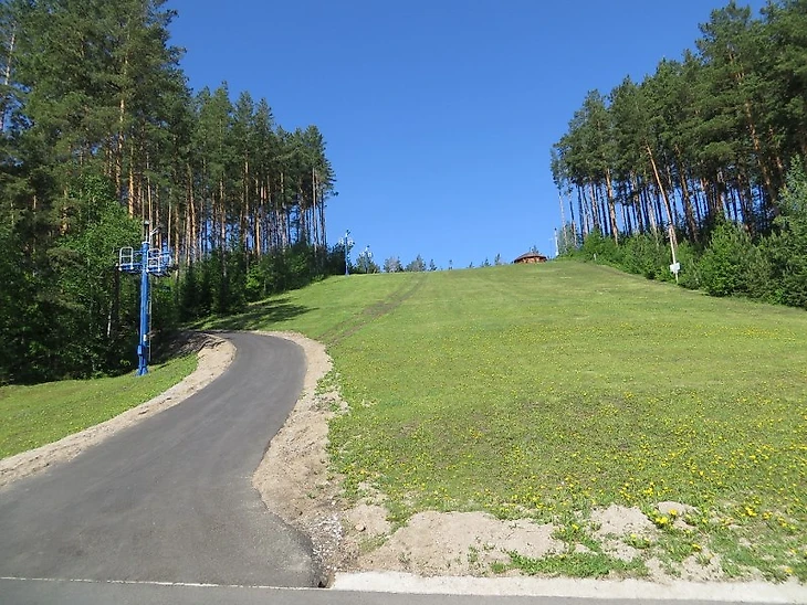 Была уже вторая половина дня. Планировала к четырём часам быть на стрельбище, но не получилось. Добралась до эко-отеля "Эхо" уже где-то ближе к пяти. Зашла в пункт проката, спросила, есть ли кто на стрельбище, ответили, что там сейчас тренируются парни. Пошла уже знакомой дорогой. Её в этом году обновили: расширили, положили свежий асфальт, хоть боком катись, как сказала бы моя бабушка. Подошла к первому подъёму. Было искушение подняться по этой лестнице (уже знала, что по лестнице намного легче, вообще легко).