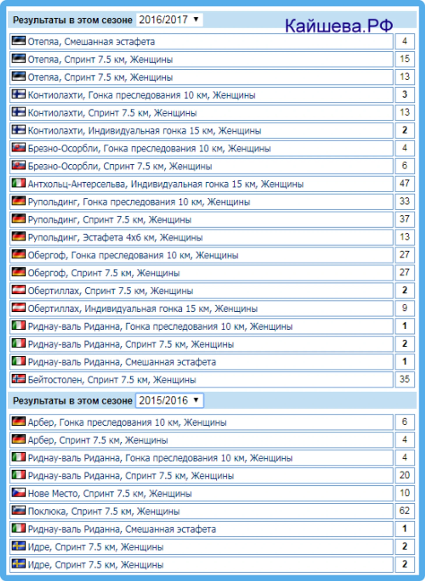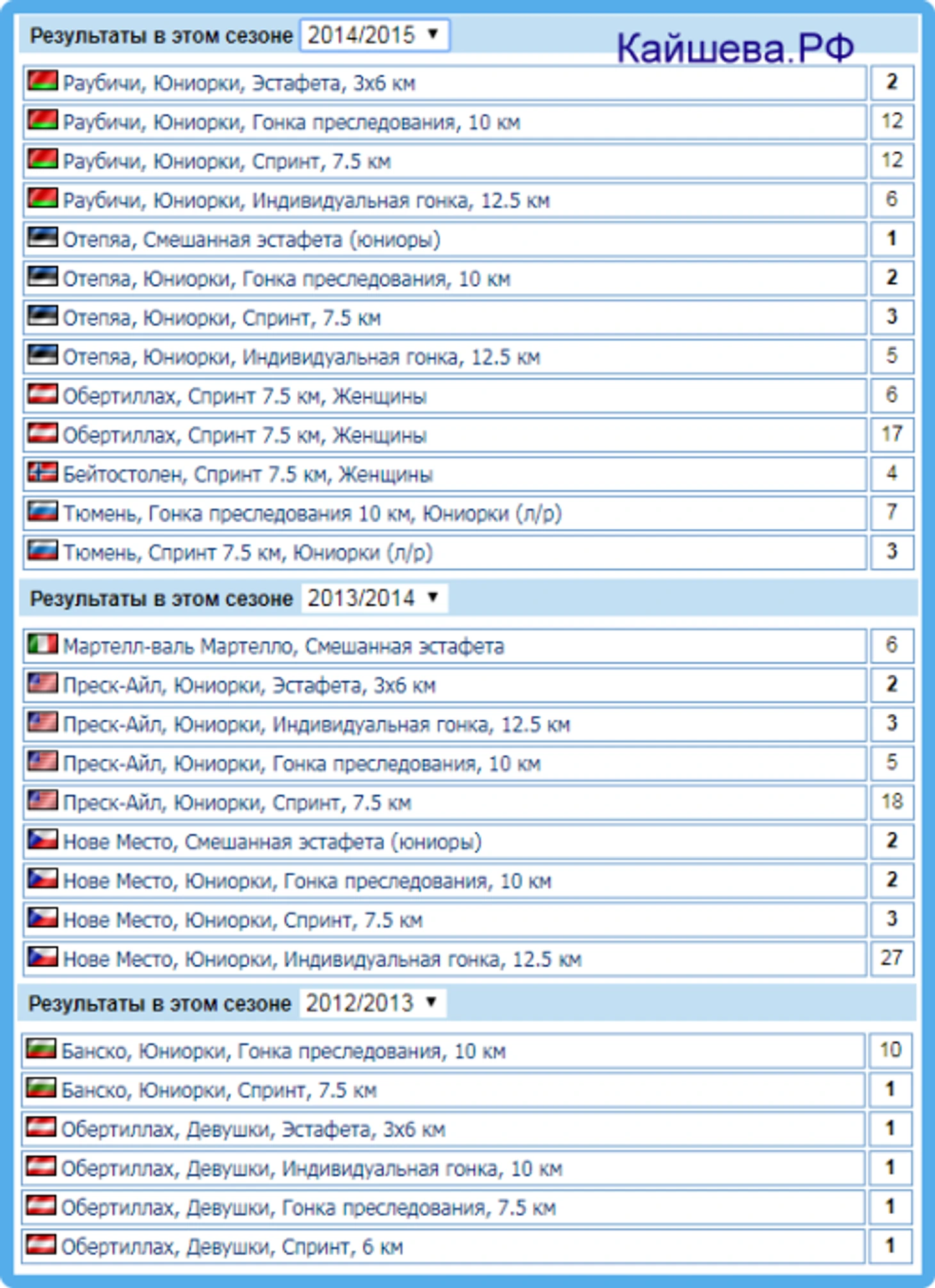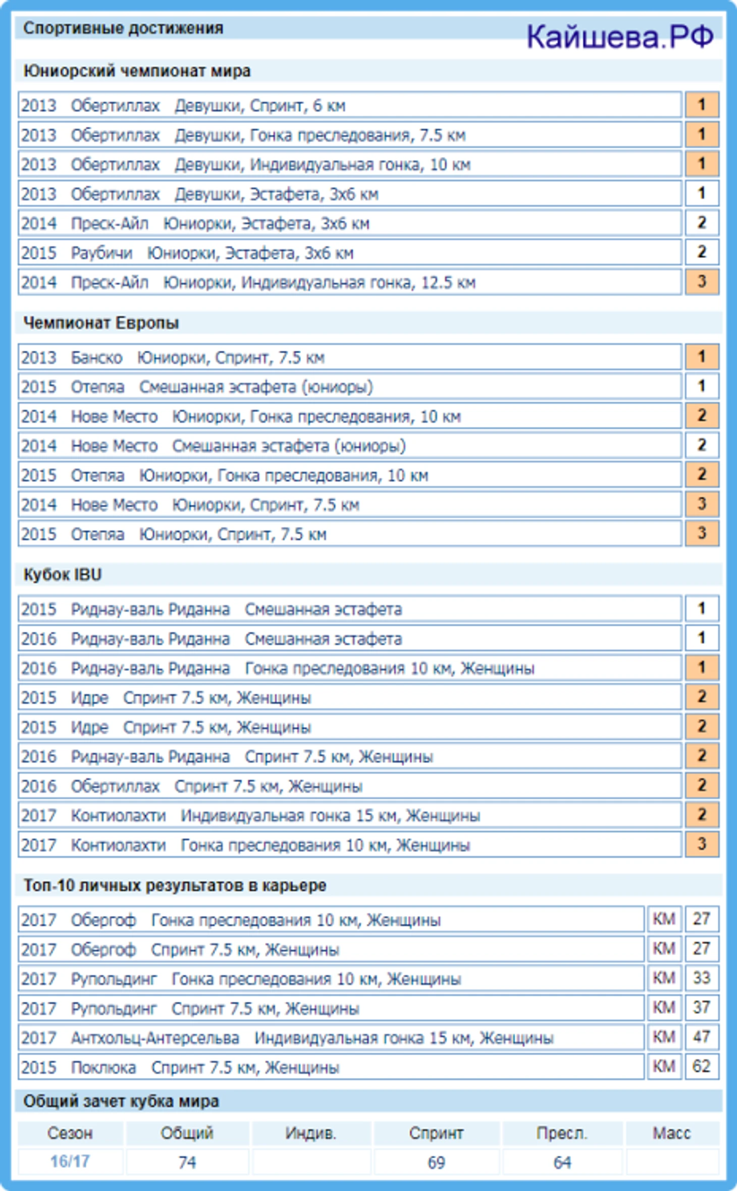 Ульяна Кайшева - спортивные достижения и результаты соревнований