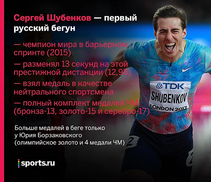 Шубенков один из шести НЕамериканцев, выигравших 110 метров с барьерами на чемпионате мира. Это удавалось британцу Колину Джексону, французу Ладжи Дакуру, китайцу Лю Сяню, барбадосцу Райану Бретуэйту, а сегодня – ямайцу Омару Маклауду.