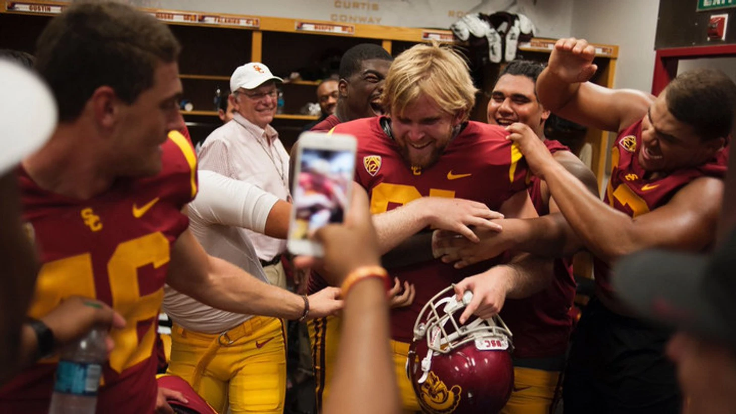 В концовке встречи с командой Западного Мичигана «Троянцы» вели 48:31, и Олсон вышел на поле – принявшие поражение соперники, кстати, пообещали не атаковать его. Джейк четко отпасовал на кикера, который сделал счет 49:31.