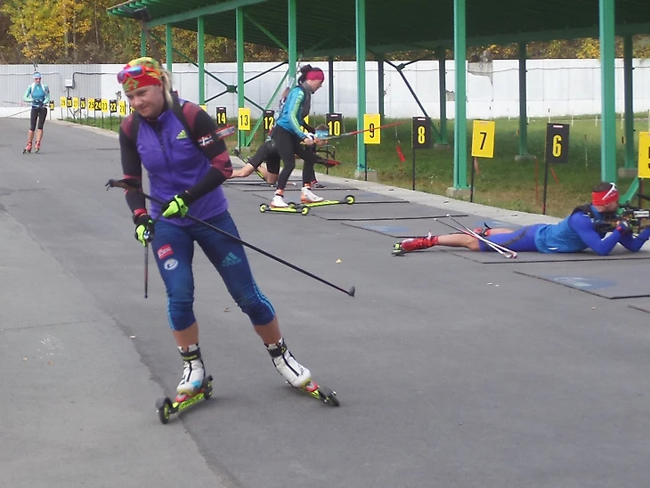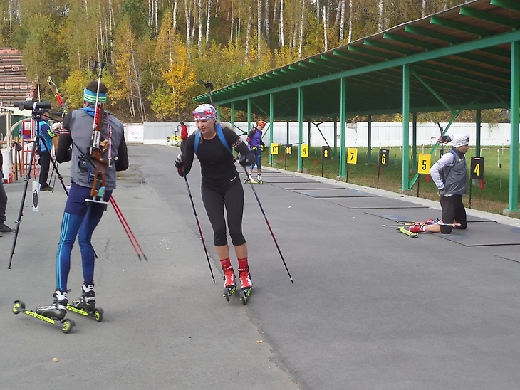 Мне тоже пора было уходить. Я еще немного побродила по дорожкам комплекса, мимо проносились лыжники и биатлонисты. На одном из поворотов стайка молодых спортсменов лет 10-12 старательно выполняла задание тренера.