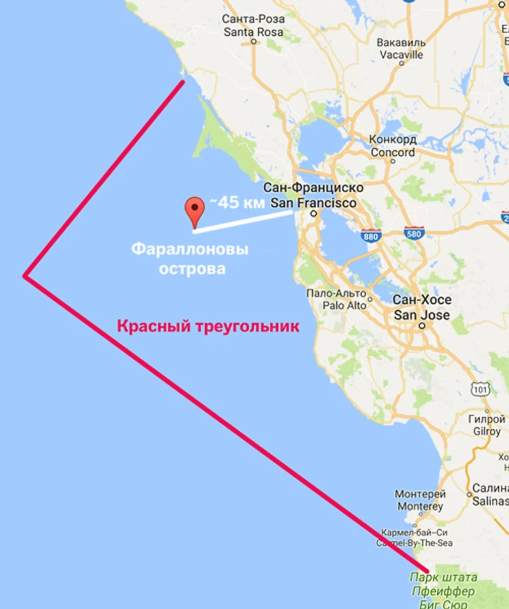 От побережья Сан-Франциско до Фараллоновых островов – почти 50 км. При ясной погоде архипелаг хорошо виден с материка. Температура воды даже летом едва подбирается к 15 градусам по Цельсию, а в океане полно живности, которую пожирают кишащие там белые акулы.