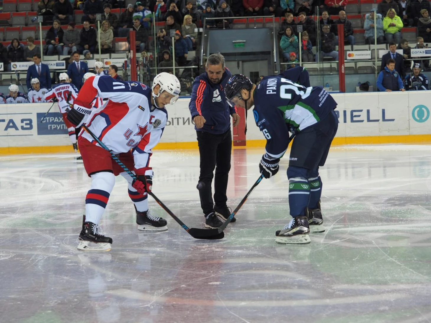 Право открыть матч и произвести символическое вбрасывание досталось старшему тренеру сборной России по биатлону, четырёхкратному олимпийскому чемпиону, девятикратному чемпиону мира Рикку Гроссу.