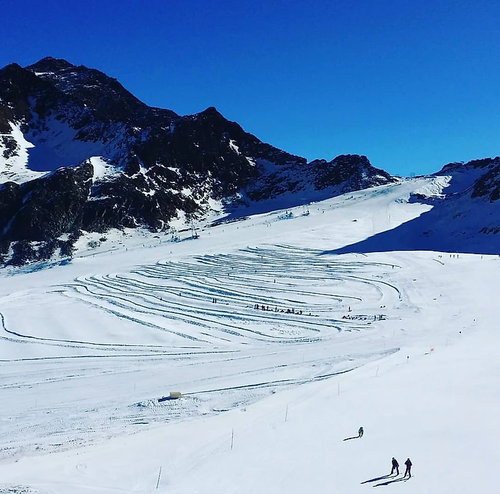 - Кто-то подумает, что это НЛО оставило такой отпечаток...:) , но мы то знаем, - это наша лыжная трасса, ежедневно с заботой подготавливаемая для нас#всеналыжи #зимарядом.