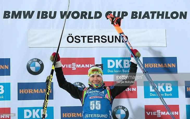 Свершилось! Надежда Скардино - победительница! Она финишировала первой в индивидуальной гонке (которая открывала личные состязания биатлонисток в нынешнем сезоне) и впервые взошла на высшую ступеньку пьедестала почета Кубка мира. И случилось это 29 ноября 2017 года в шведском Эстесунде. Долгожданный и заслуженный успех!