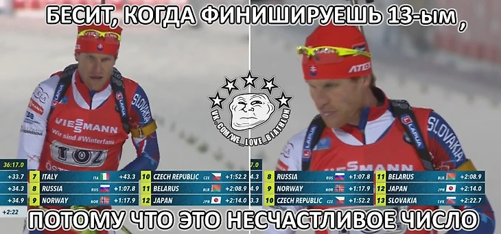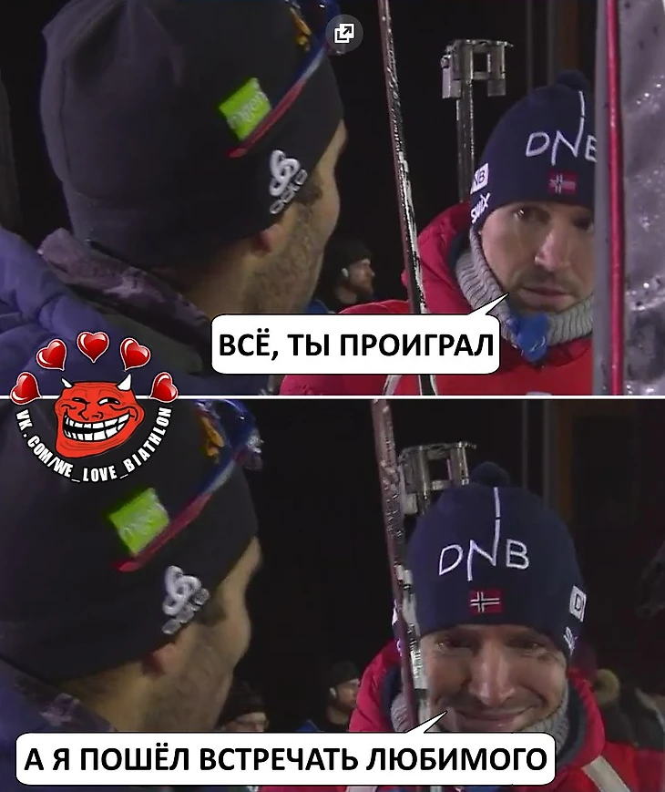 На этом все) Надеемся, пост поднял вам настроение! Ждем всех в нашей суровой группе Вконтакте: https://vk.com/we_love_biathlon Всем пока!