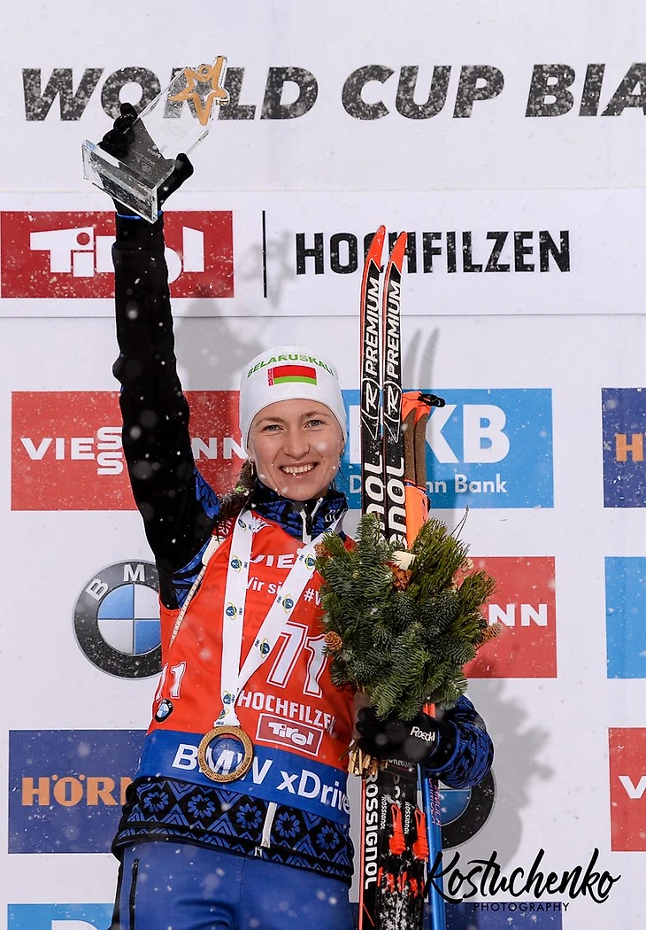 После неудачного этапа в Эстерсунде, на котором Даше не бежалось, на котором она мучилась с лыжами и не смогла завершить спринт из-за плохого самочуствия (оказалось потом, что у Дарьи поднялась температура), огонек оптимизма и веры слабо теплился в мыслях и душах поклонников белорусской примы. Но наша "девушка-камбек" в очередной раз повергла скептиков и поразила всех своим чемпионским характером - она блестяще выиграла спринтерскую гонку в Хохфильцене!