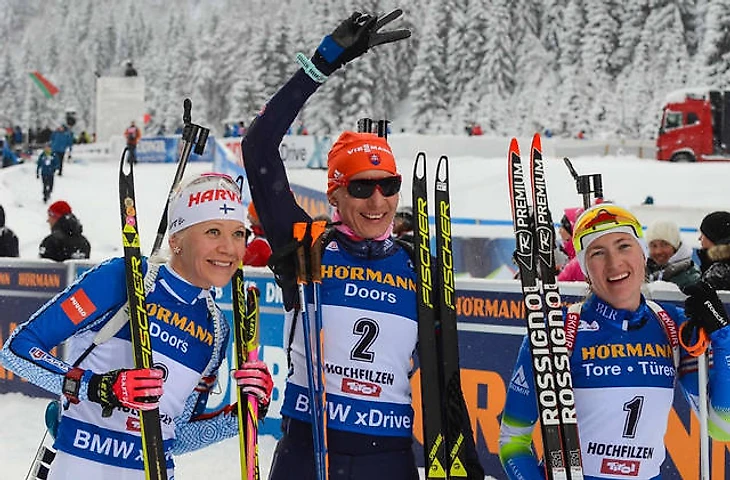 В Хохфильцене состоялась вторая гонка у женщин на втором же этапе. После победы в спринте у Дарьи Домрачевой был запас перед ближайшей соперницей Анастасией Кузьминой из Словакии в 22,1 секунды, это позволяло расчитывать представительнице Беларуси на высокий результат. Но, к сожалению, быть в топе по скорости у Дарьи не получилось, хотя со стрельбой всё складывалось не плохо (1 промах из 20 выстрелов). Благодаря стартовому запасу по времени и неплохой стрельбе Домрачева сумела занять третье место, кстати, для Дарьи это последняя личная гонка в сезоне - следующий этап во французском Анси она пропустит.