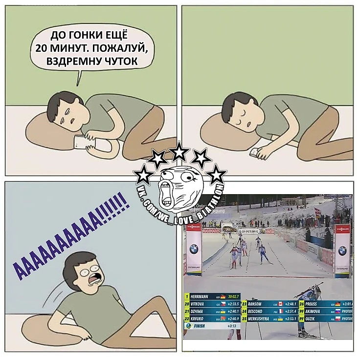 Как-то так) Напоминаю ссылку нашей группы, если кто подзабыл: https://vk.com/we_love_biathlon Скоро выложу мемы по третьему этапу в Анси, так что не расслабляйтесь ;)