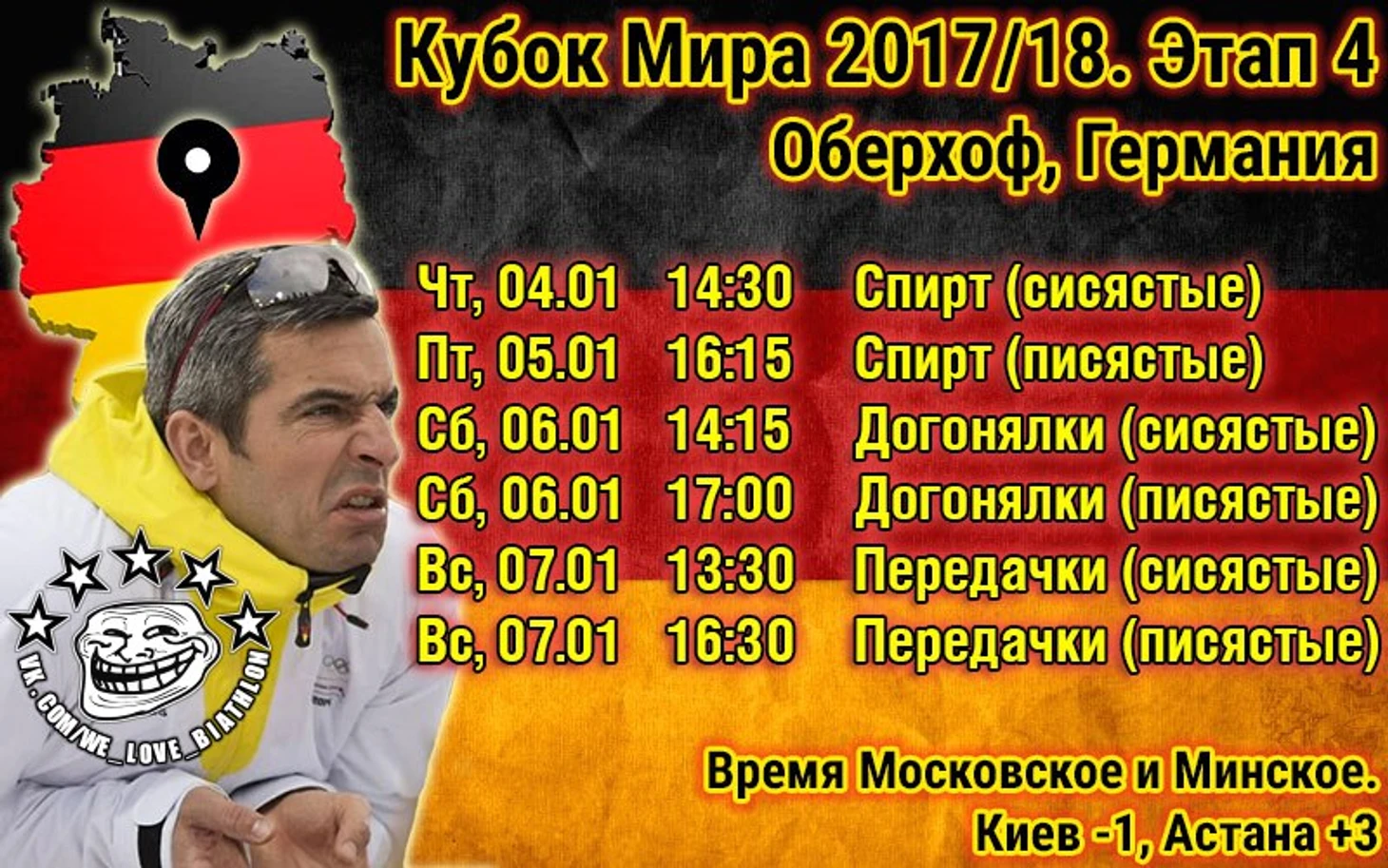 Ну, и в завершение, расписание четвертого этапа КМ, который откроется уже завтра в Оберхофе: