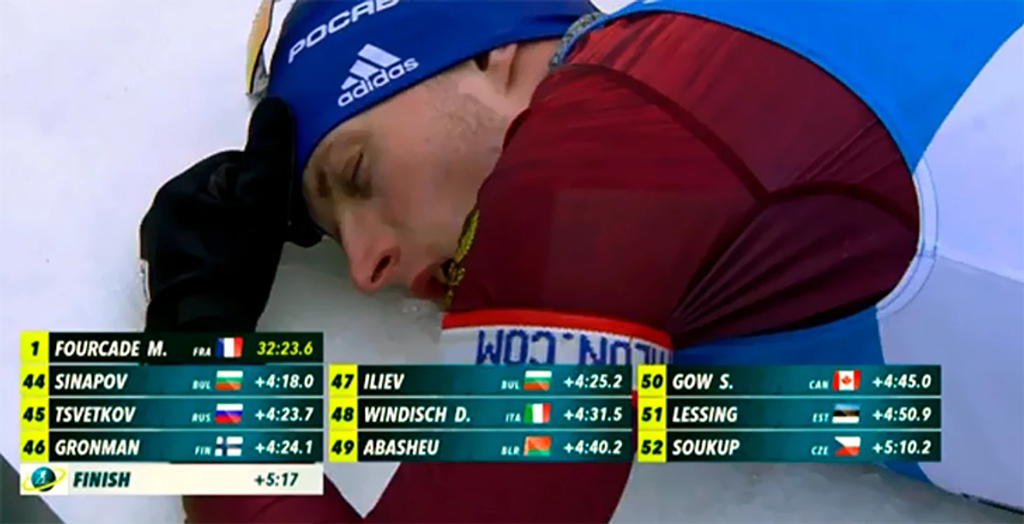Кому-то, на этом самом финише, так плохо, что хочется протянуть руку помощи. И это не издевка: Максим Цветков, прекрасный парень и талантливый видеоблогер, после преследования в Оберхофе долго не мог подняться. Его вырубило.
