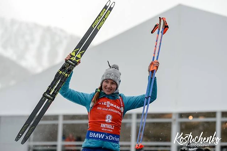 В итальянском Антхольц-Антерсельве завершилась последняя гонка у женщин на 6 этапе Кубка мира по биатлону. Это гонка стала финальной на этапах Кубка мира перед Олимпийскими играми у женщин. И финал получился для беларусов отличным! Дарья Домрачева лишь на первой стрельбе (из 4 кто забыл) не сумела закрыть одну мишень, а дальше были сплошные нули. Не лучшая скорость по дистанции (в смысле не первая), но довольно неплохая (4-ая в итоге), плюс, как я уже говорил хорошая стрельба, и Дарья выиграла гонку! Ещё одна беларуска Ирина Кривко, также допустила 1 промах (последним выстрелом на 4-ом огневом рубеже) и заняла 12-е место.
