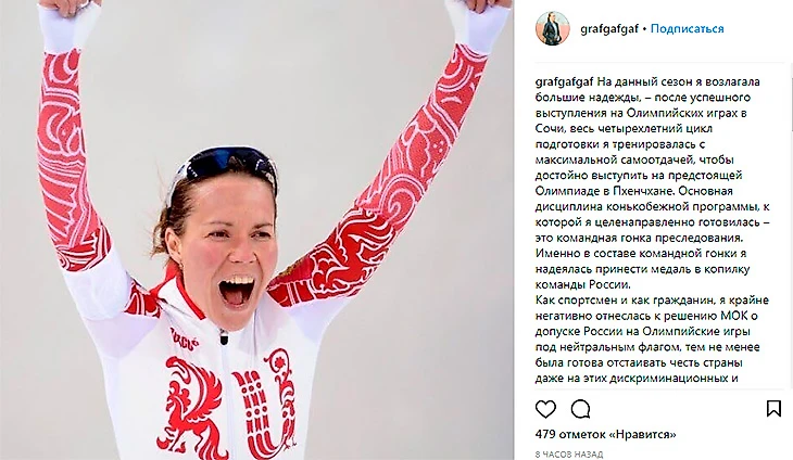 Граф, которая должна была бежать в Корее на двух дистанциях, отказалась и дала понять, что сейчас вместе с отстраненной командой. Эти слова появились в виде заявления на сайте «Р-спорт»: