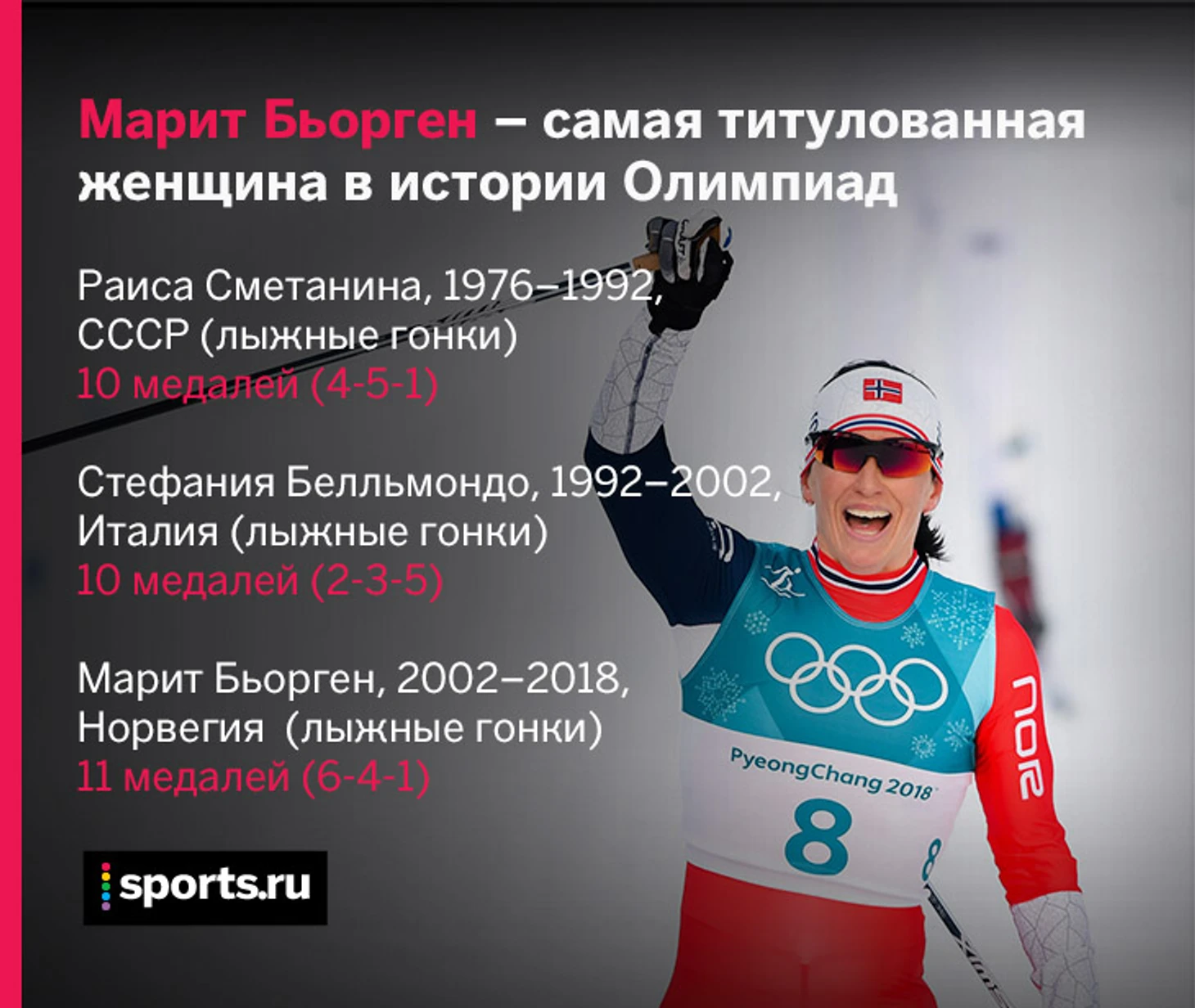 Бьорген – рекордсменка по медалям. Впереди только мужики