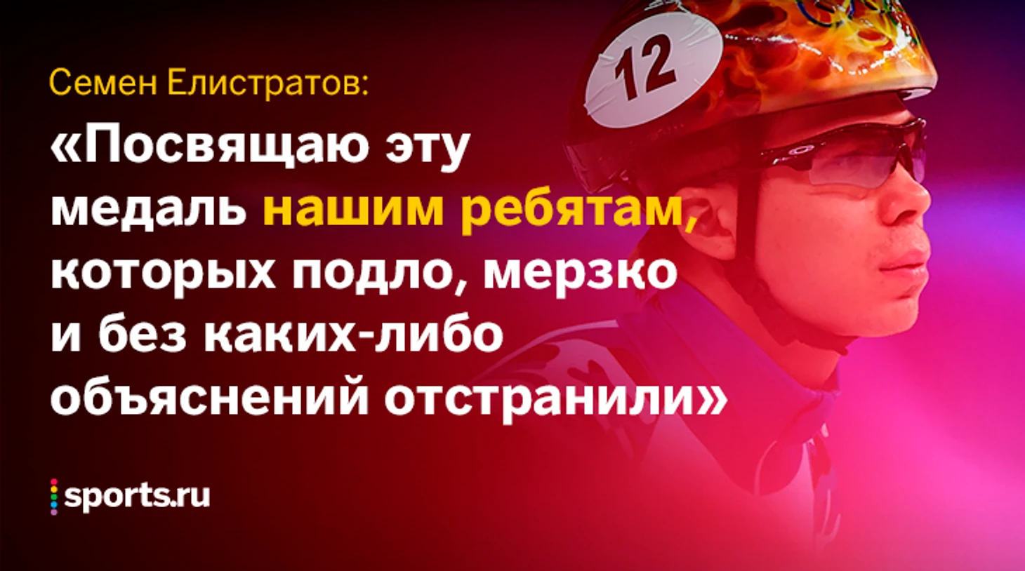 «Когда нас награждали, я стоял и еле сдерживал слезы. Для меня это очень выстраданная медаль. Очень много людей говорили: «Семен, ну какие тебе Олимпийские игры? Куда ты едешь?» А я взял и показал им всем. Не отступил, там, где другие отступали и не сдался там, где другие сдавались. Я безумно рад. Посвящаю эту медаль нашим ребятам, которых подло, мерзко и без каких-либо объяснений отстранили. Не сдавайтесь! Боритесь до конца!» – когда кто-то снова спросит, зачем наши спортсмены в Пхенчхане, просто покажите им Елистратова.