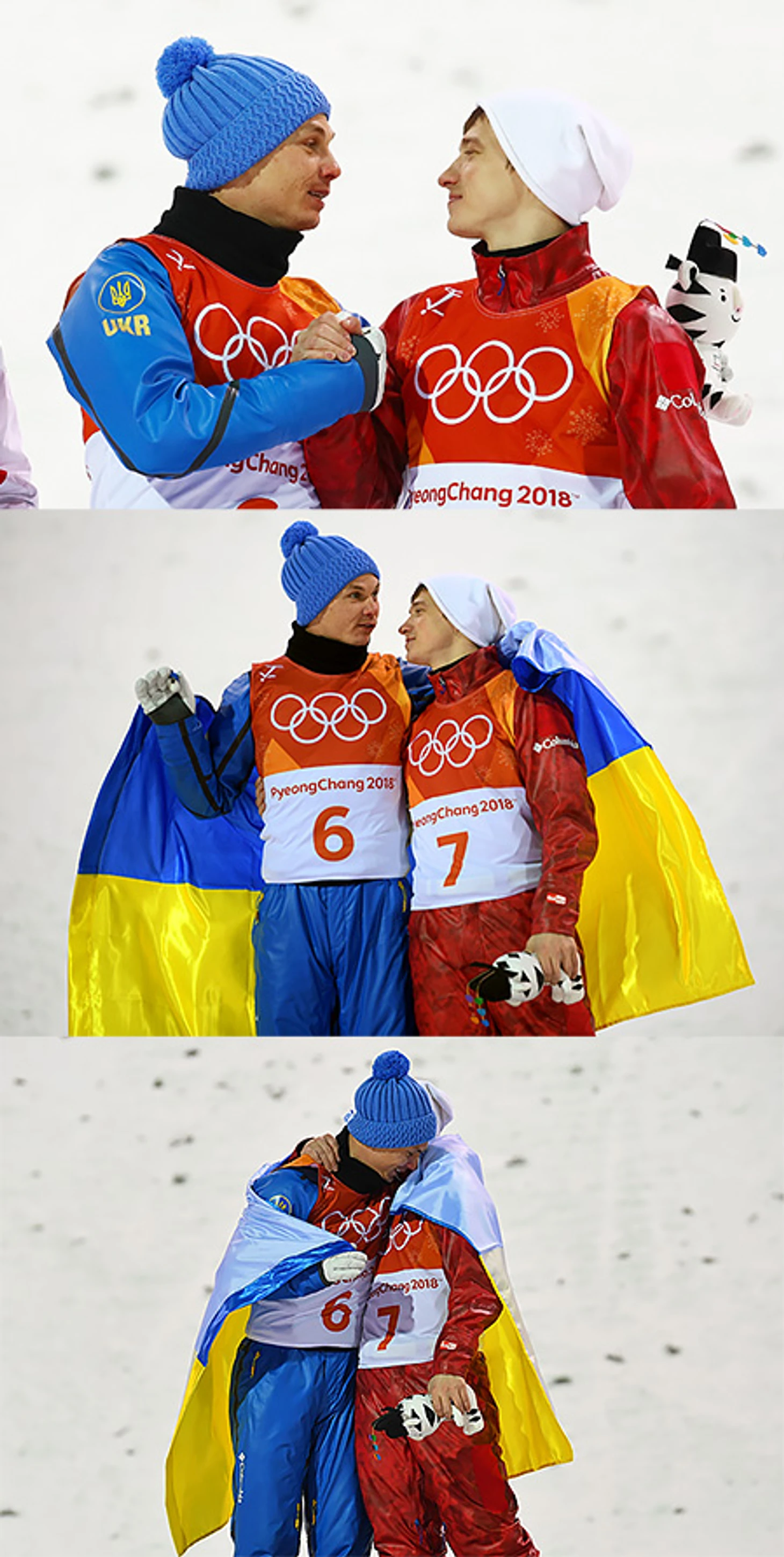 На награждении парни из России и Украины обнялись, оказавшись обернутыми в украинский флаг чемпиона Абраменко. У Бурова своего флага не было – его демонстрация спортсменами на Играх-2018 в Пхенчхане запрещена МОК.