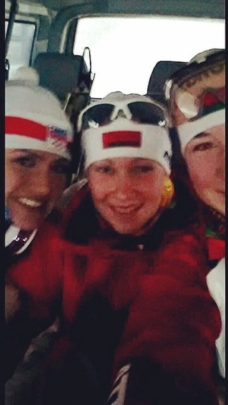 На фото с Дарьей Домрачевой и Габи Соукаловой.