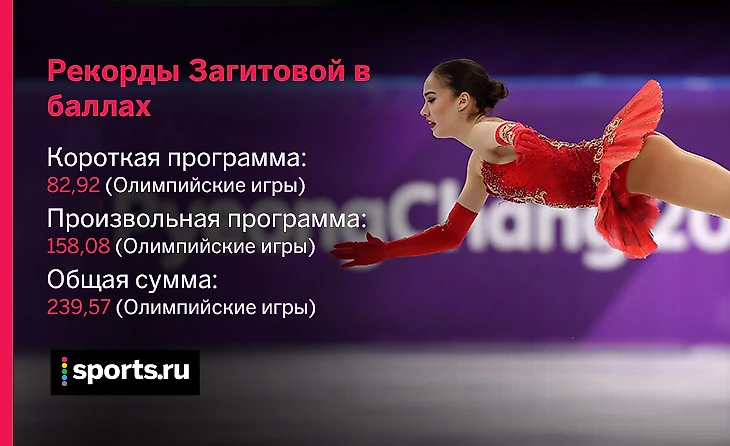 Среди рекордов Загитовой – один мировой. В короткой программе. Благодаря ему она и выиграла Олимпийские игры, так как сумма в произвольной у них с Медведевой была одинаковая.
